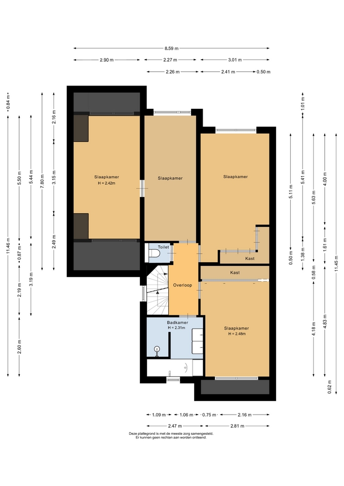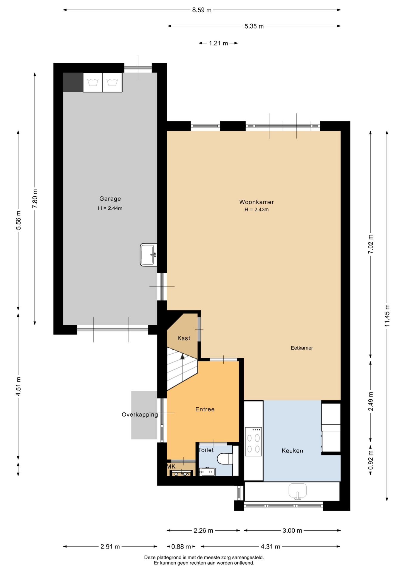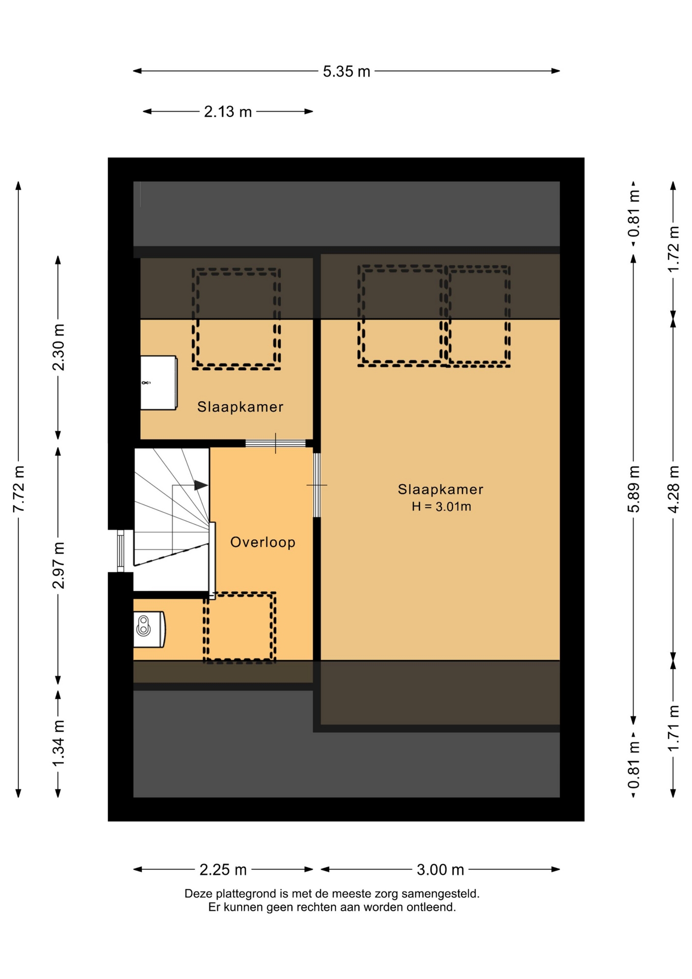 “Deze informatie is door ons met de nodige zorgvuldigheid samengesteld. Onzerzijds wordt echter geen enkele aansprakelijkheid aanvaard voor enige onvolledigheid, onjuistheid of anderszins, dan wel de gevolgen daarvan. Alle opgegeven maten en oppervlakten zijn indicatief.”
