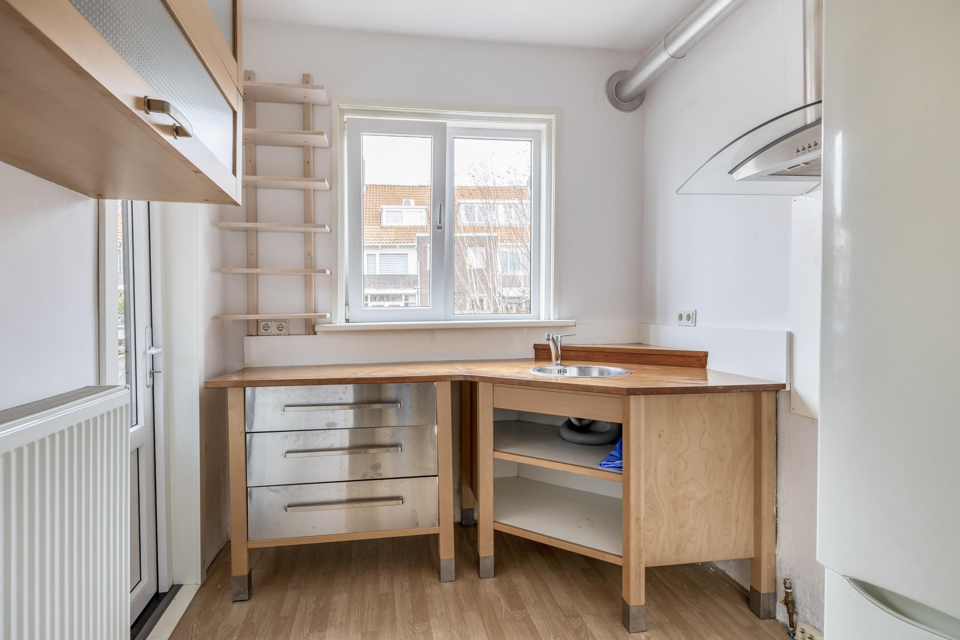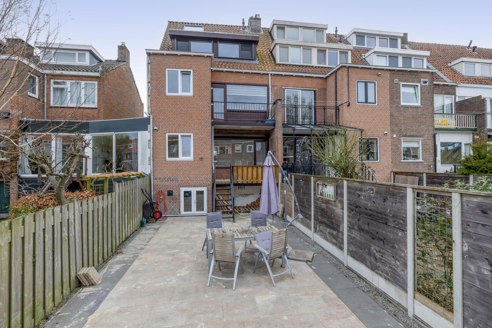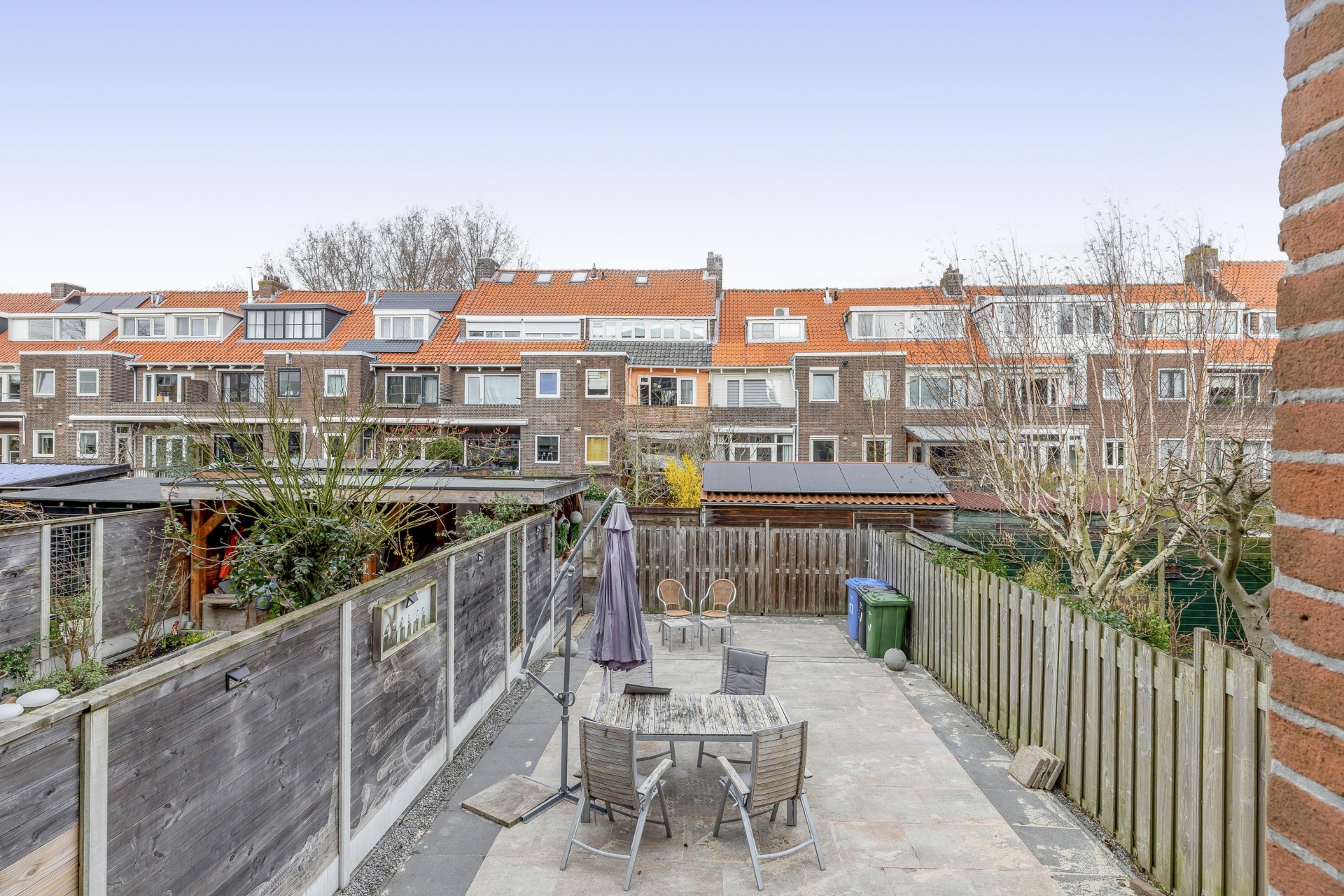 Eén van de absolute pluspunten van dit huis is de achtertuin. Met een diepte van circa 15 meter en een ligging op het noordoosten heb je hier altijd wel een plekje in de zon of juist in de schaduw. De tuin is grotendeels bestraat en daardoor onderhoudsvriendelijk, maar biedt ook voldoende mogelijkheden om groen toe te voegen en er echt jouw eigen plek van te maken. Door de diepte ervaar je hier veel privacy en rust.