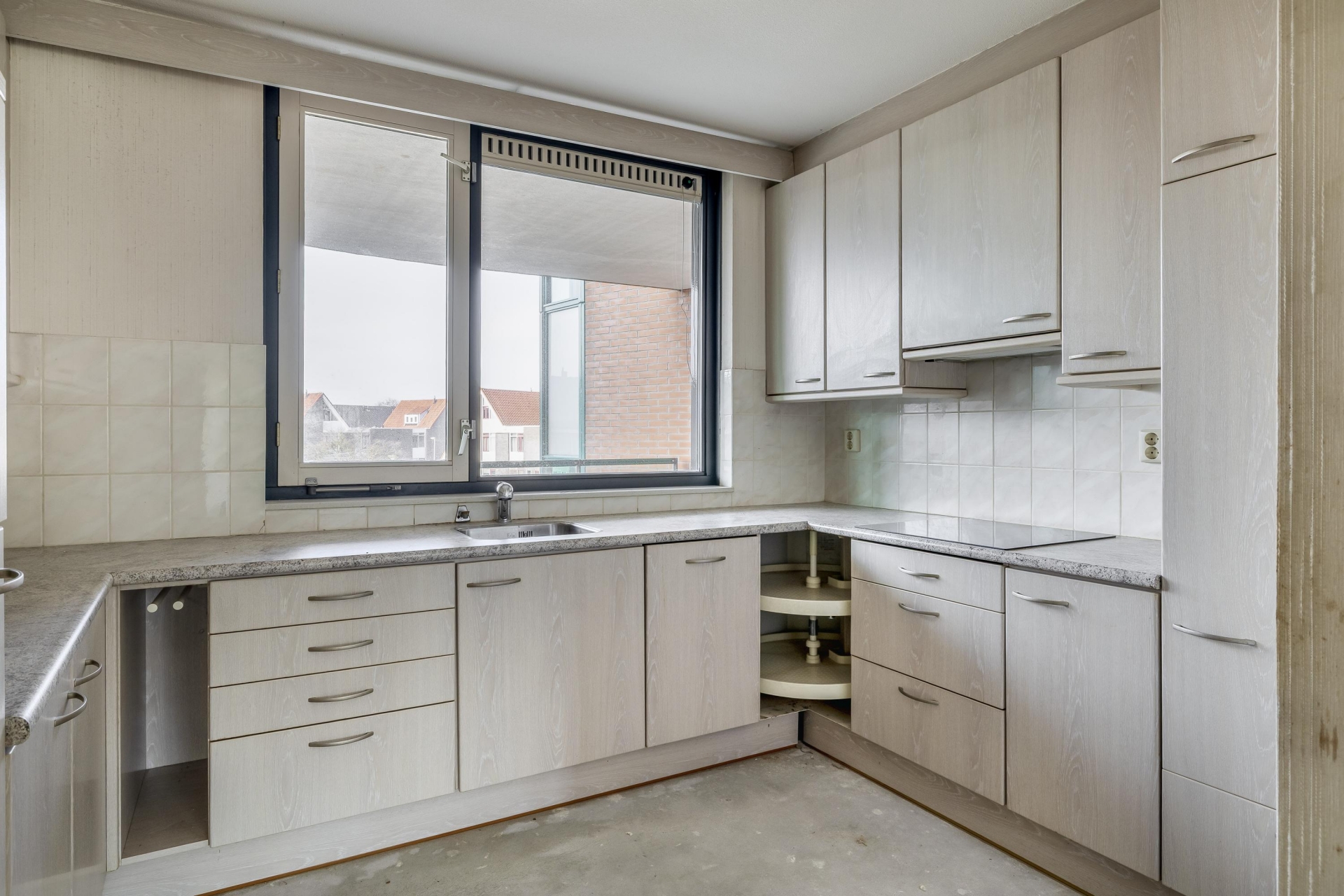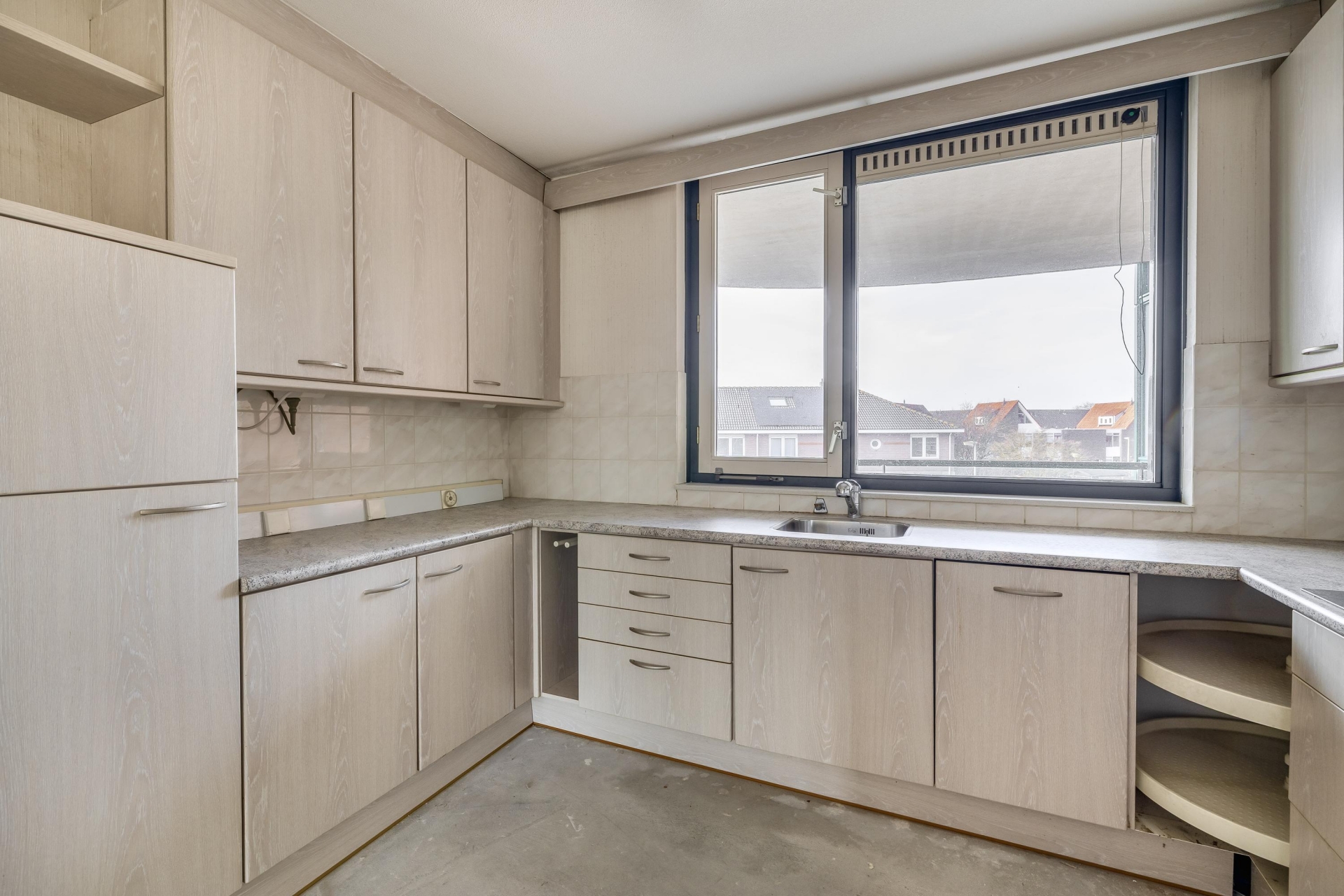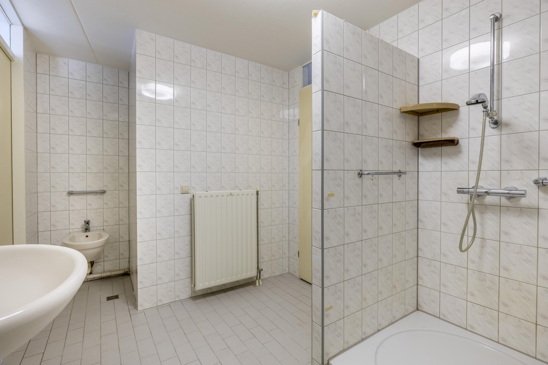 De woonkamer is opvallend ruim en licht dankzij de grote raampartijen aan de waterzijde. Hier heb je volop plek voor een grote zithoek én een eettafel, zonder in te leveren op bewegingsruimte. Het appartement beschikt over twee volwaardige slaapkamers. De grootste kamer grenst aan het balkon en biedt genoeg ruimte voor een tweepersoonsbed en kastenwand. De tweede kamer is ideaal als logeerkamer, werkkamer of hobbyruimte. Ook de badkamer is prettig ruim en beschikt momenteel over een douche, bidet, wastafel en aansluiting voor de wasmachine. Daarnaast is er een apart toilet in de hal, net als een extra bergkast. Alles is gelijkvloers en goed bereikbaar, wat dit appartement bijzonder geschikt maakt voor wie toekomstgericht wil wonen. Het appartement biedt een goede basis om naar eigen smaak te moderniseren.